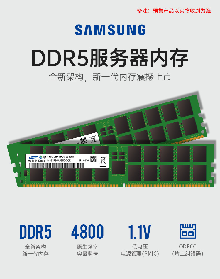 三星16G DDR5 4800 RECC M321R2GA3BB0-CQK 服務器內存條 返回