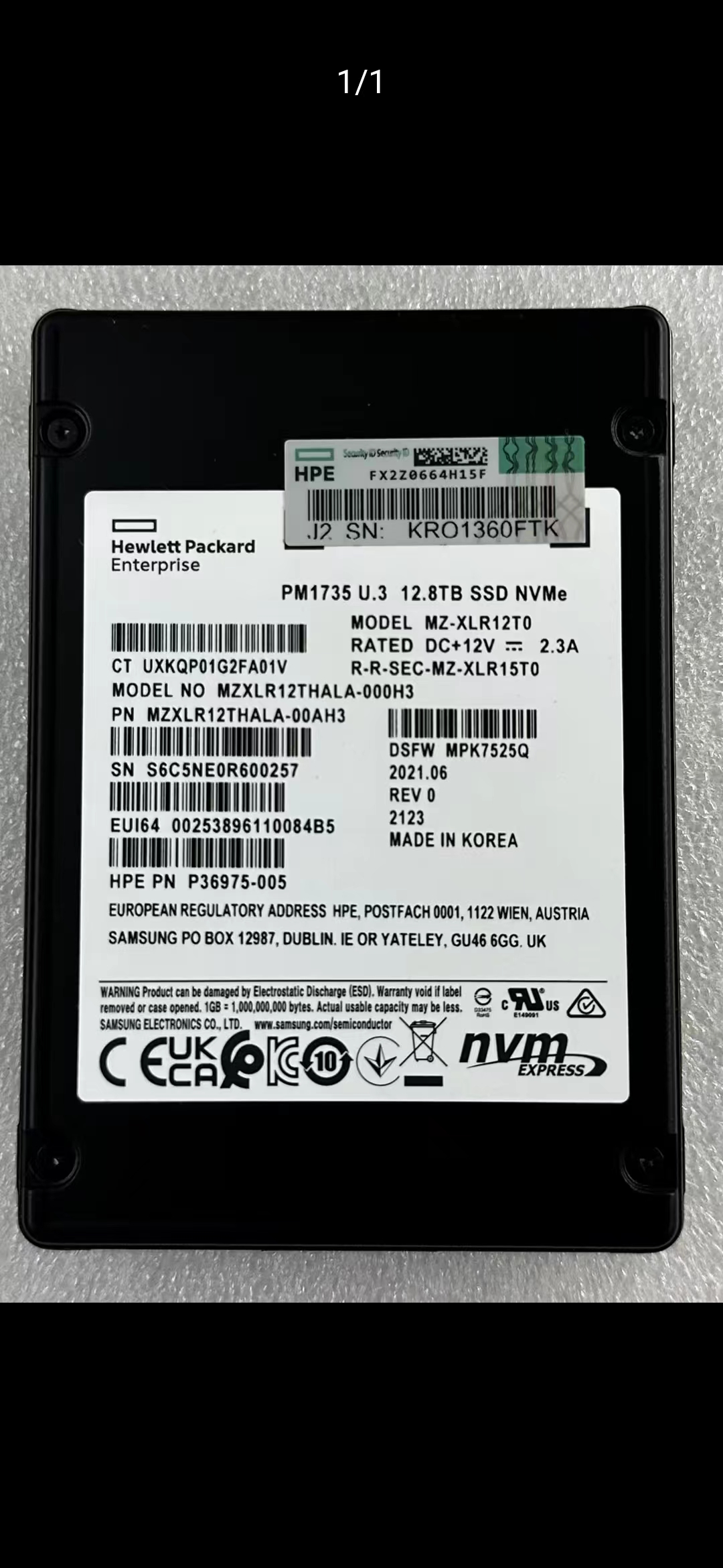三星PM1735 12.8T U.3 NVMe MZXLR12THALA-00AH3惠普定制版企業級SSD