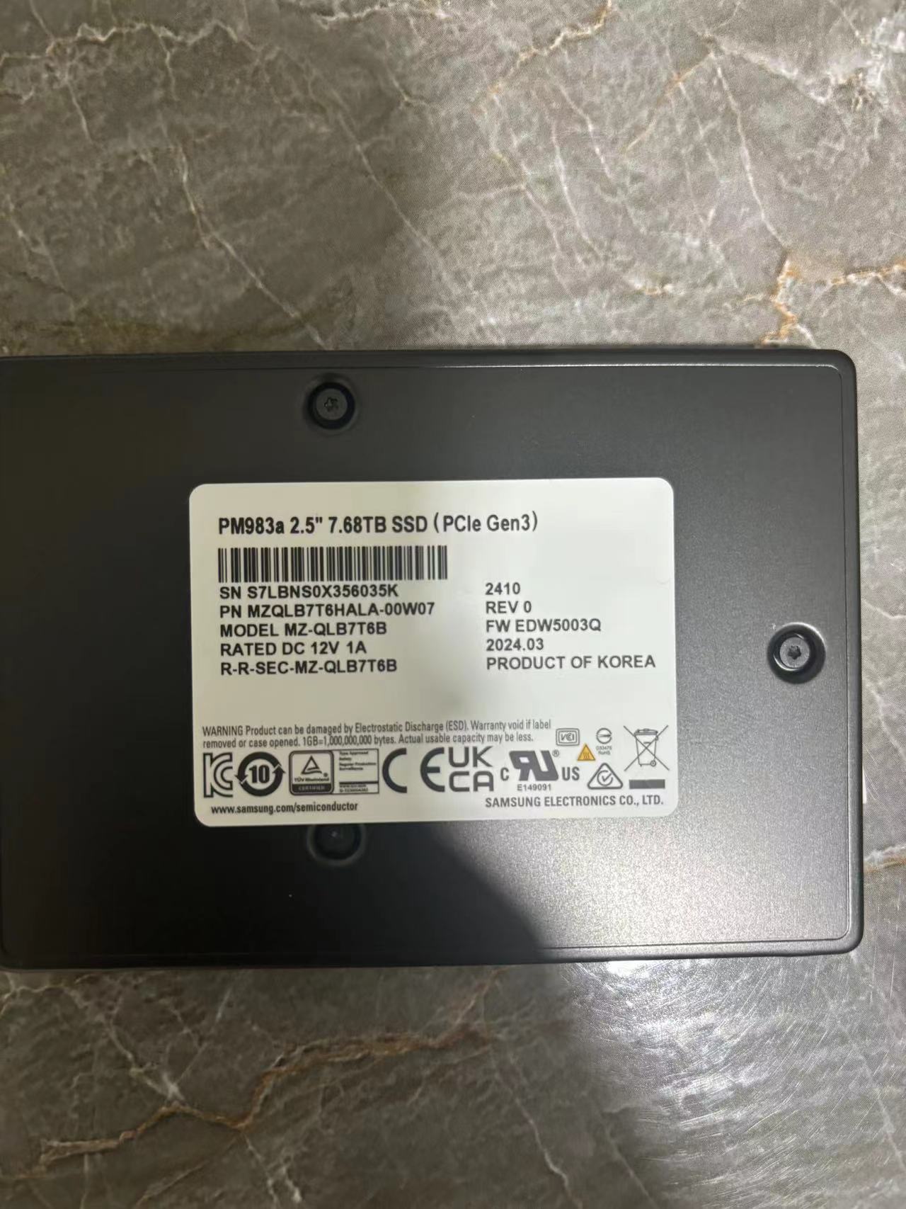 MZQLB7T6HALA-00W07三星PM983A 7.68T U.2 NVME企業級SSD