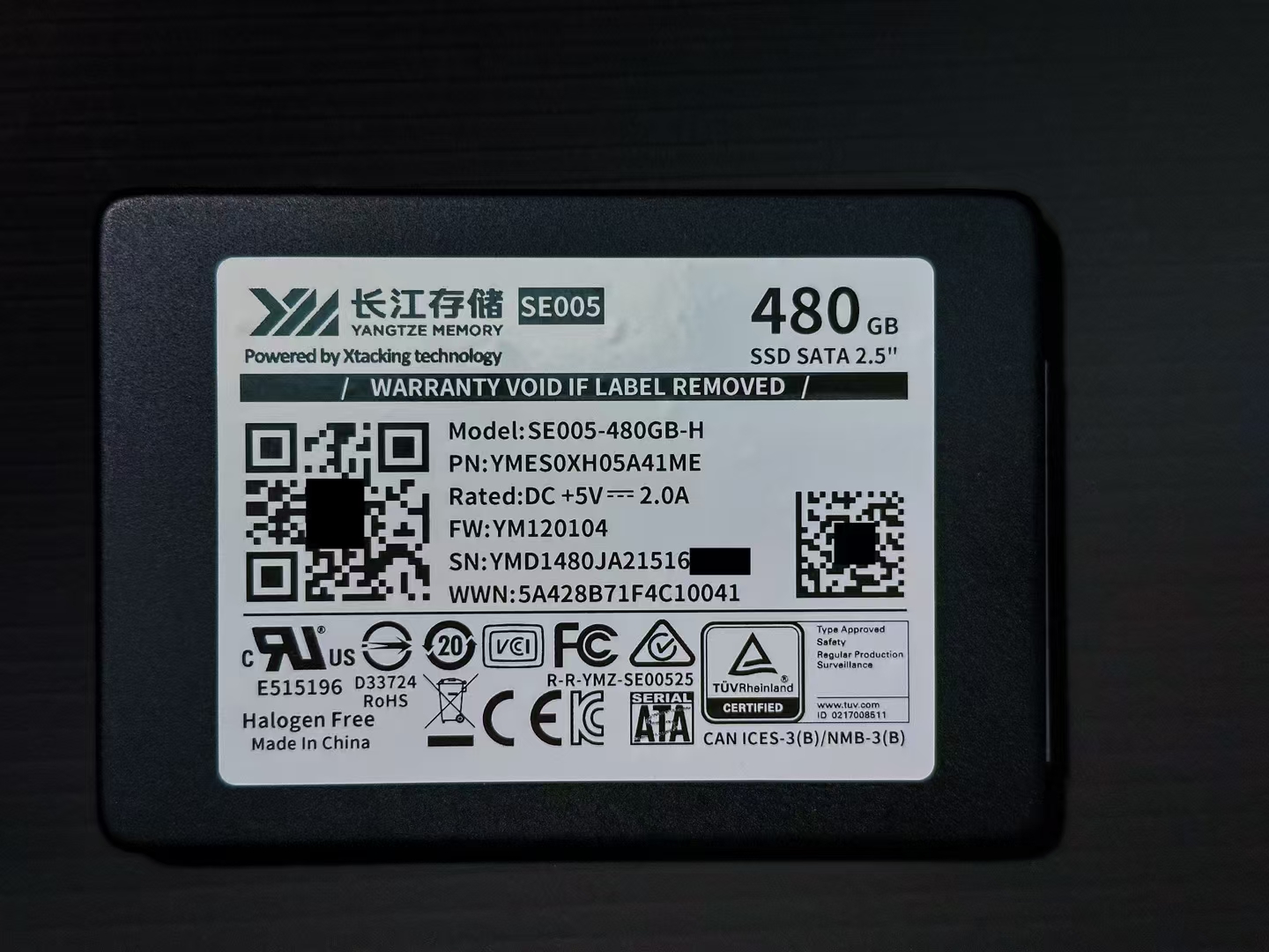 長江存儲企業級SATA SSD SE005容量點為240G~1.92T,尺寸2.5寸,順序讀寫分別高達540/510 MB/s,隨機讀寫分別高達98/59 KIOPS,小容量點適合作為服務器啟動盤使用。
