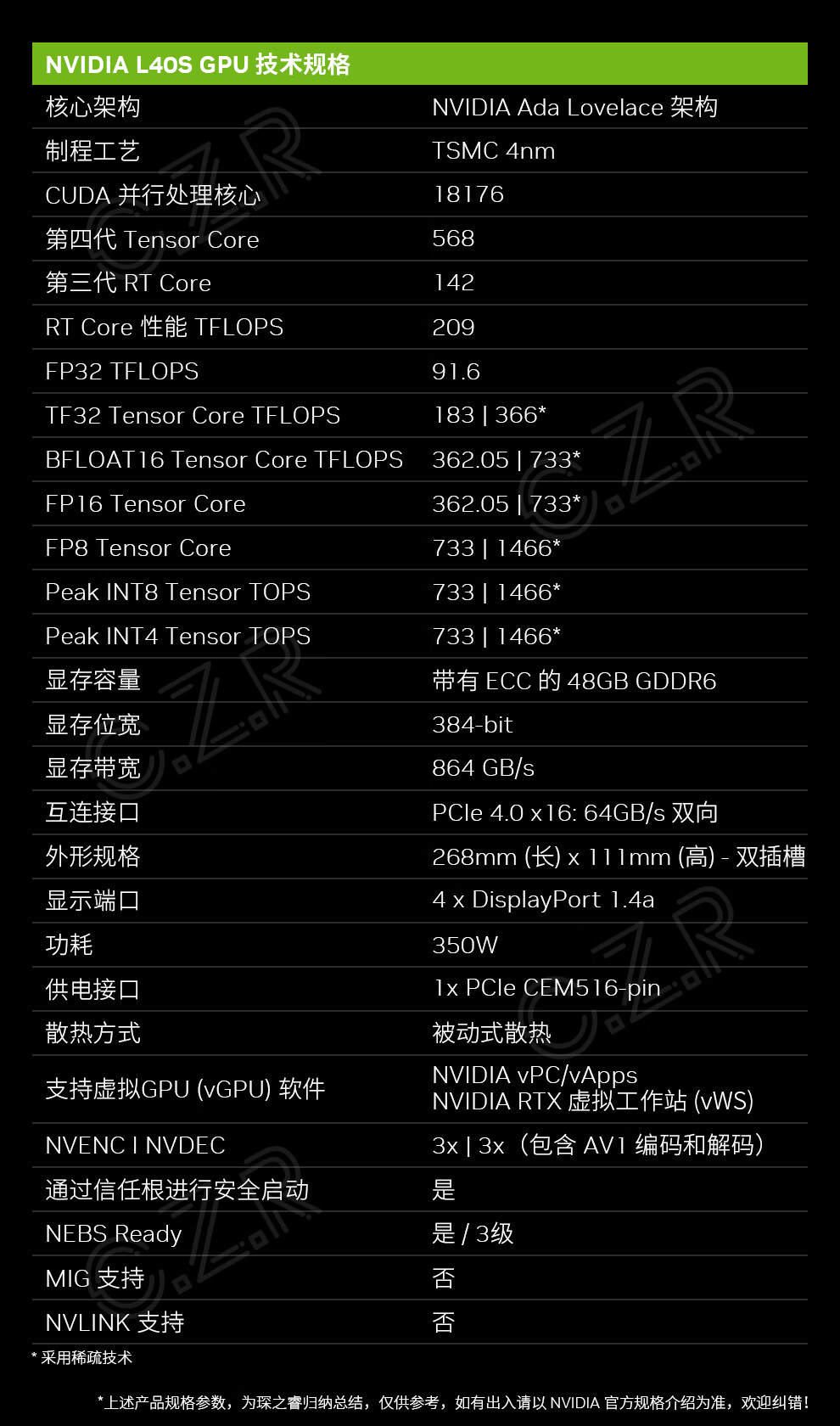 英偉達(dá)NVIDIA Tesla L40S 48G GPU卡